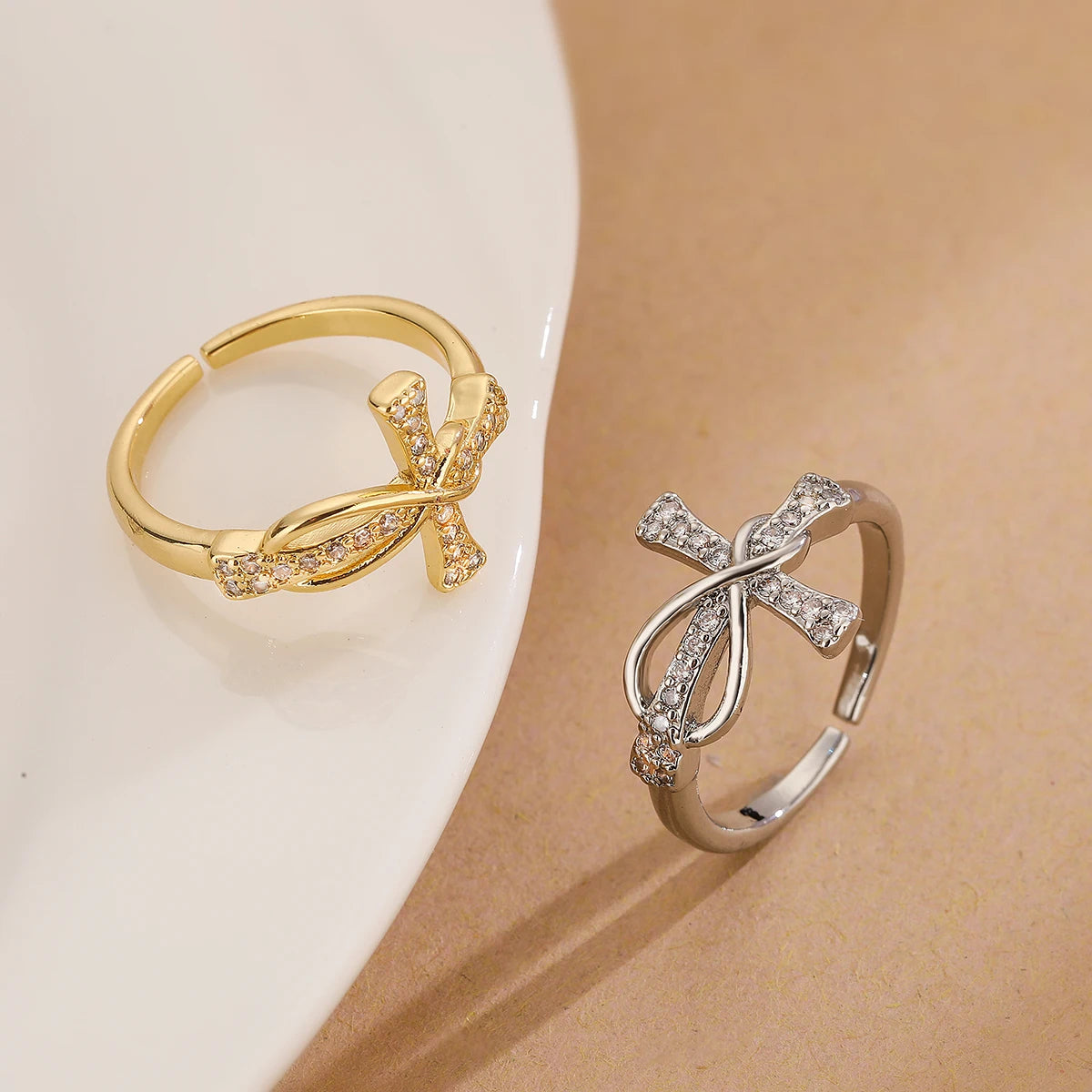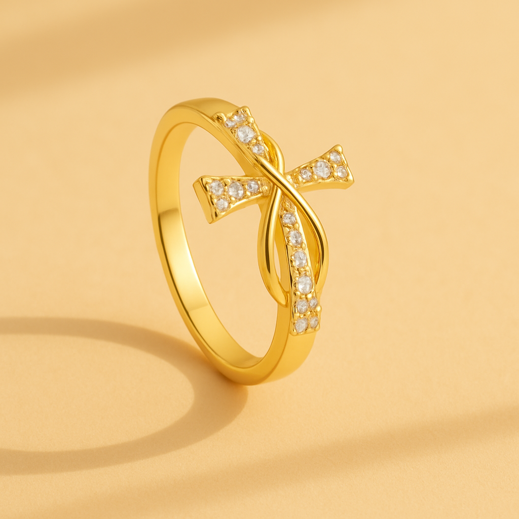 The Infinity Cross Ring is expertly crafted for those who carry both spiritual conviction and endless love in their hearts. Featuring a graceful infinity loop that seamlessly intertwines with a sparkling cross design, this ring combines premium gold-plated construction with precision-set cubic zirconia stones. The flowing curves create a dynamic interplay between the symbols of eternal life and infinite love, while the comfortable band ensures all-day wearability for life's most meaningful moments.